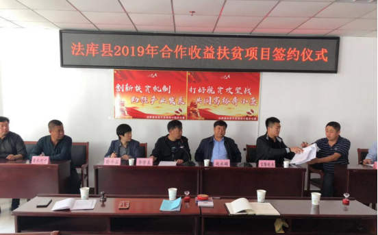 为扎实推进我县2019年精准脱贫工作,9月26日在县政务中心C区204会议室举行法库县2019年合作收益扶贫项目签约仪式,在仪式上,副县长赵永硕代表法库县扶贫开发领导小组办公室与沈阳宝隆牧业有限公司、双台子乡人民政府、四家子乡人民政府、卧牛石乡人民政府、秀水河子镇人民政府、和平乡人民政府签订了合作收益扶贫项目三方协议书,协议的签订,标志着法库县2019年合作收益扶贫项目正式启动,为我县2019年建档立卡贫困人口未脱贫28户75人的脱贫提供有力保障,实现稳定收益。